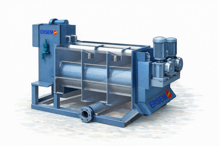 Before entering the unit, sludge undergoes preliminary thickening in a gravity thickener. This is mandatory, as the equipment is designed to process thickened sludge rather than raw liquid.